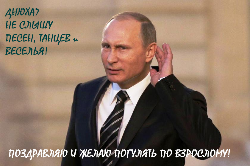 Путин поздравляет с днюхой, страна гордится тобой, мужик!